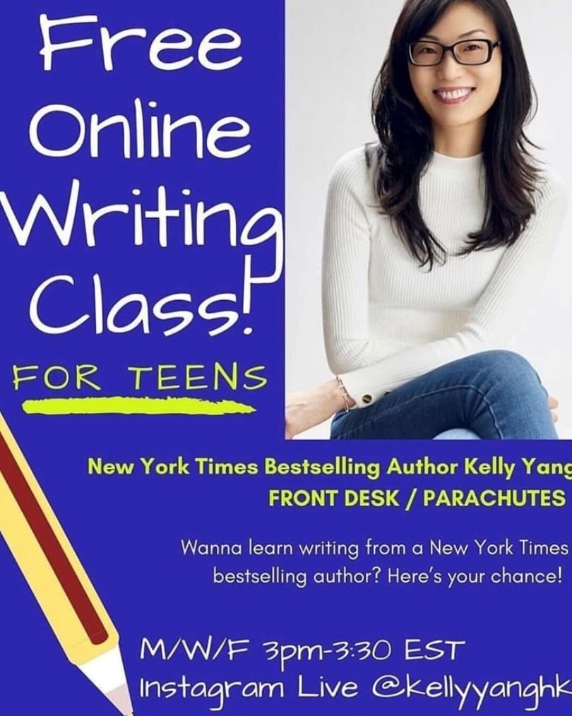 What a great opportunity for teens! Join New York Times bestselling author Kelly Yang (“Front Desk”) for free online writing lessons. Click here to learn more about Kelly. Details about her online classes are below.