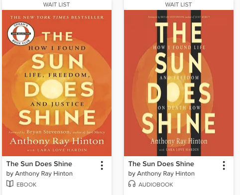 A related read is The Sun Does Shine, a memoir written by a client of Bryan Stevenson, Anthony Ray Hinton. This book details the harrowing account of Mr. Hinton’s 30 years on death row for a crime that he did not commit. Available to borrow in OverDrive in both ebook and e-audiobook format.