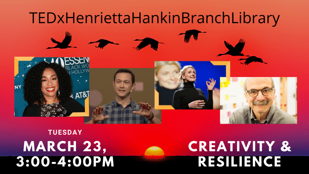 The Henrietta Hankin Branch Library is excited to offer a monthly virtual TEDx program to discuss “Ideas Worth Spreading.” Join us on Wednesday, November 18 at 6 pm to watch a curated selection of TED Talks followed by a community discussion.
