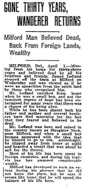 The front page of the April 2, 1920 Philadelphia Inquirer reports that a Milford man, missing for 30 years, has returned “From Foreign Lands, Wealthy.” Inside, the “Housewife’s Economy Calendar” column offers advice on how to sew a blouse.